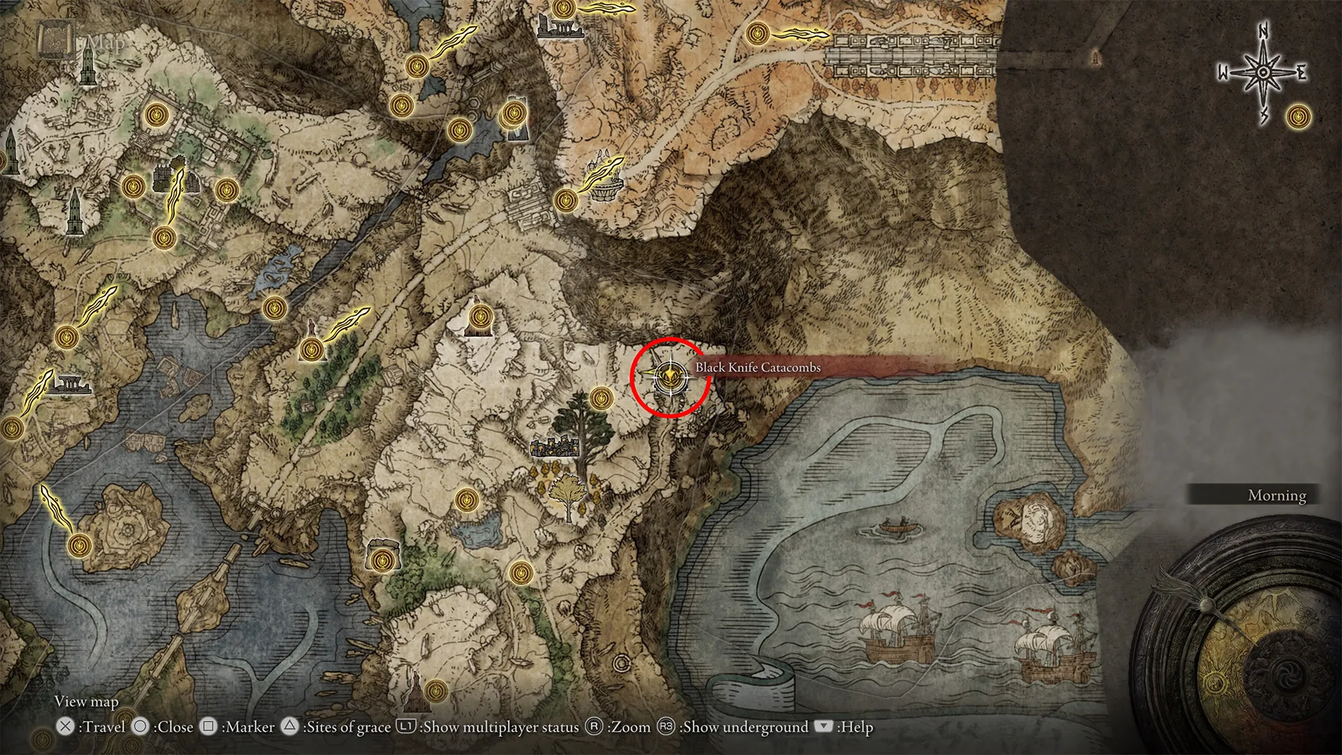 The Black Knife Catacombs can be found in northeastern Liurnia of the Lakes, beyond the maze of canyons around the area’s Minor Edrtree. You’ll need to navigate this area and actually pass the Erdtree to find this dungeon, which is guarded by a knight that can fade into a mist before reappearing.
