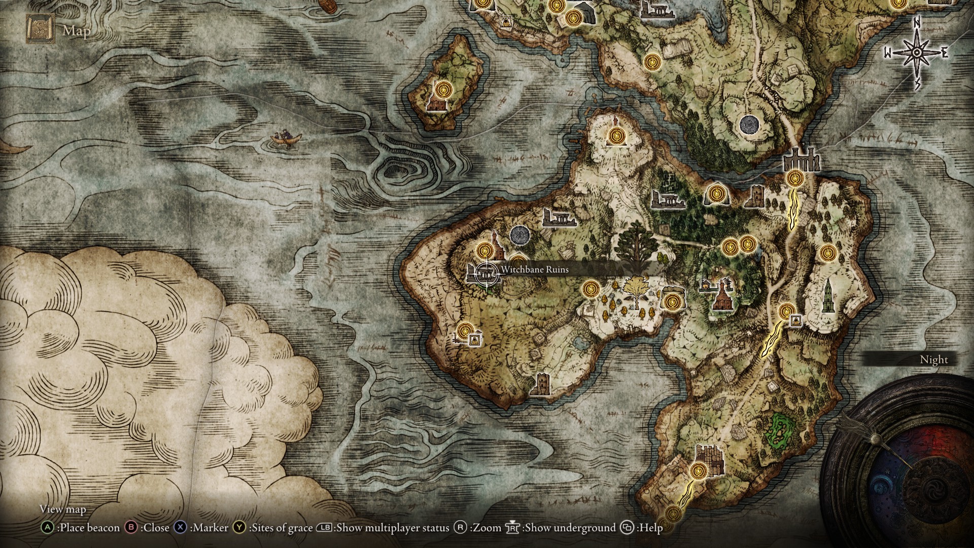 Go back to the Waypoint Ruins and speak to Sellen. In her menu, select “Lusat’s location.” Listen to what she has to say about her body, and she’ll point you to the Witchbane Ruins in the western portion of the Weeping Peninsula south of Limgrave.