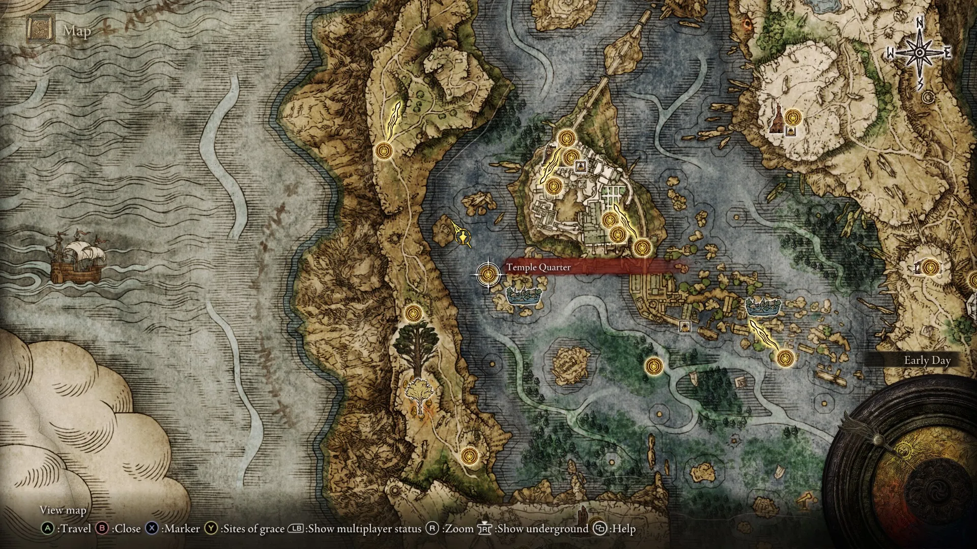 Continue taking the path north, and eventually, it will turn to the left (west), and you’ll see the Four Belfries area marker appear in the middle of your screen. Continue up the hill until you reach the highest belfry. Beyond it is the official Four Belfries Site of Grace, which you should grab for easy access later.