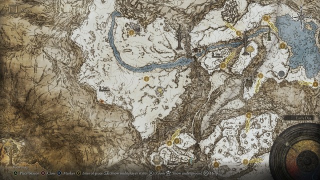 If you head directly north from the Village of the Albinaurics, you’ll reach the Rose Church. East of the Church is a small ruin with the Fallen Ruins of the Lake Site of Grace and a giant crayfish patrolling nearby. You’ll need to kill the crayfish to spawn an even worse enemy: a Grafted Scion. Kill that monstrosity for this one.