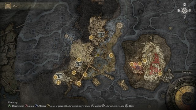 For this respec item, go to Caria Manor in the far north of Liurnia. Make your way through, beat Loretta, and enter Three Sisters. Pick up the Ranni’s Rise Site of Grace in the far west, then head southeast until you come to a cliff overlooking the manor.