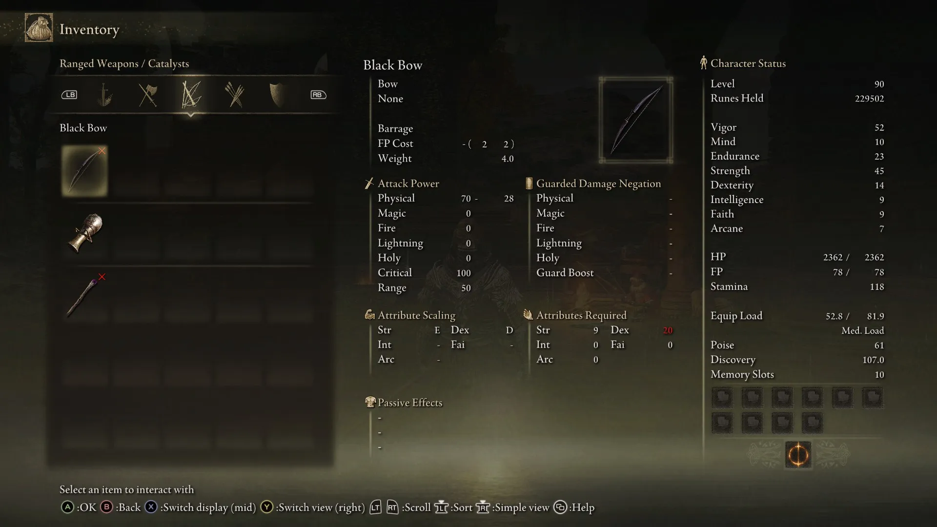 As a standard bow, the Black Bow’s version of Barrage will deal more damage than it would on a light bow, but the weapon weights double what most other bows do. It also requires 20 Dexterity to even use, far more than most other bows.