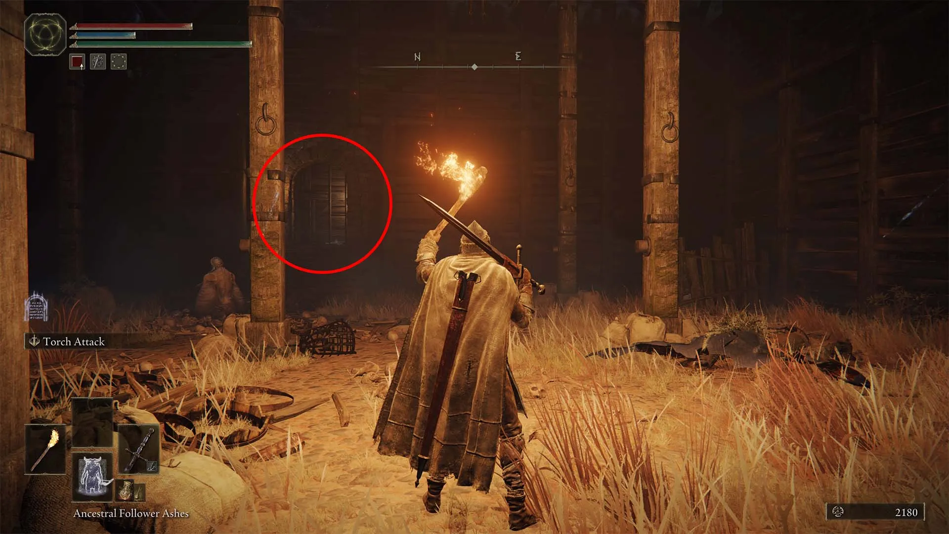 Once you enter Fort Faroth, turn left and look toward the bat that drops down. Go behind it, then left past the wooden barrier/wall. You’ll enter a larger room with wooden beams connecting the floor and ceiling. At the back of the room, there will be a small set of stairs leading into an alcove with a ladder leading up.