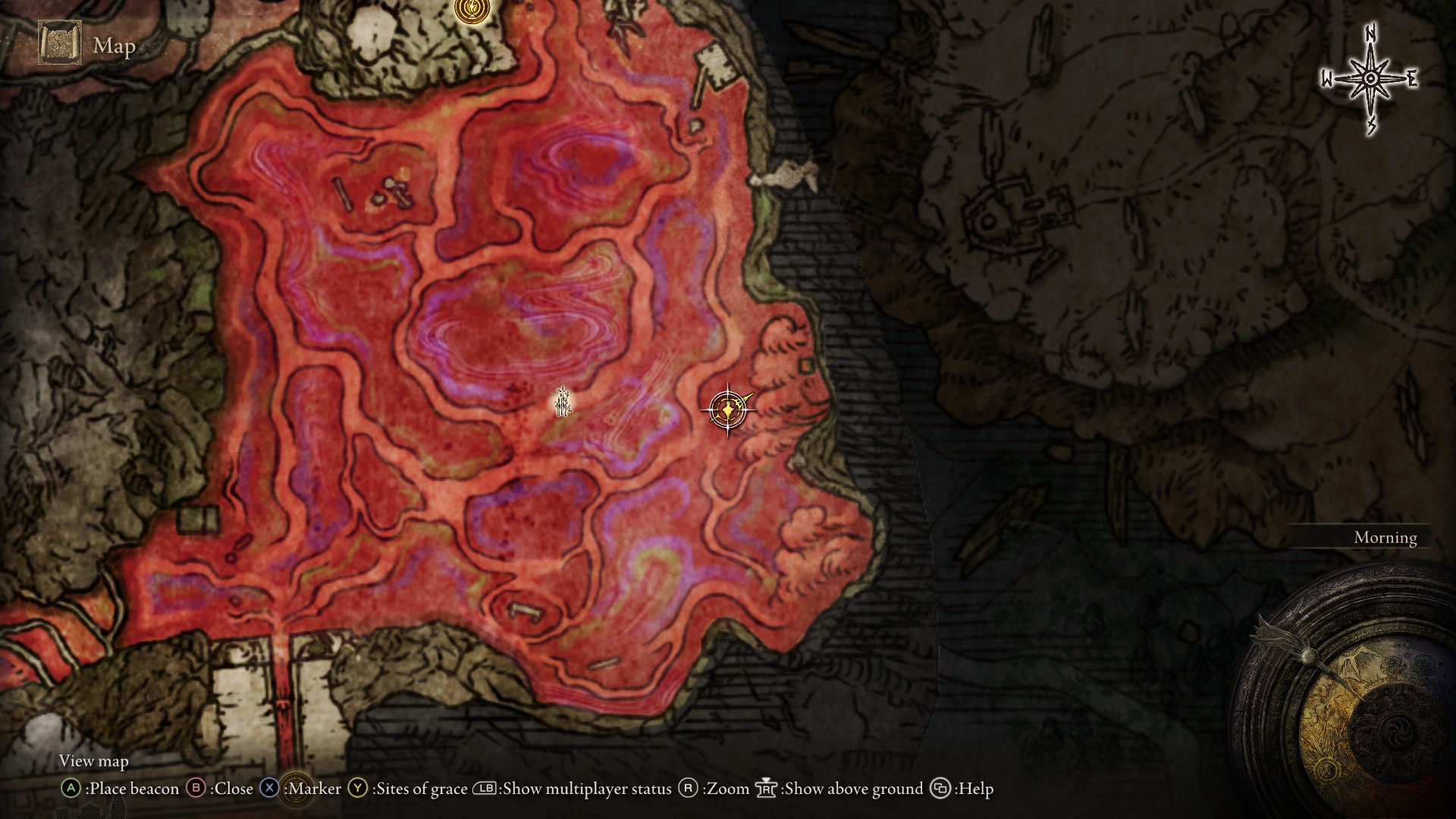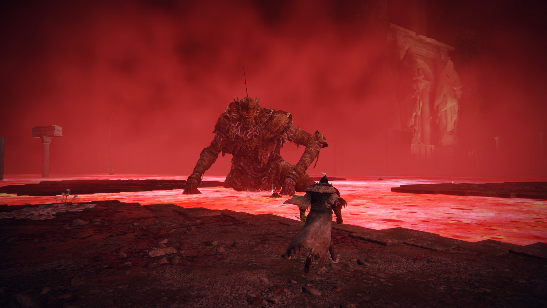 The Stake rests on a small platform with an obelisk, and you’ll appear right next to a button on the ground. Pressing that button causes three large platforms to rise out of the lake around the Dragonkin Soldier, giving you solid ground to fight on and keeping you from constantly being afflicted with Scarlet Rot.