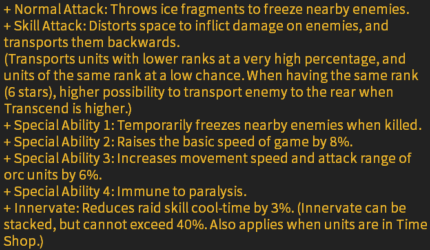 Like a fair amount of the other top-tier units, Ice Spirit also increases the basic speed of the game on top of movement speed and attack range for its tribe. There really are no downsides to this unit and it (along with Naga) is the best orc units by a long shot.