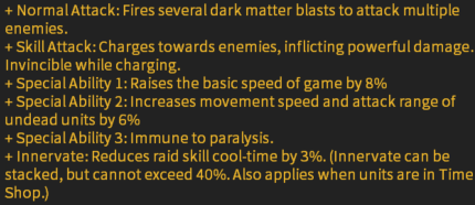 Incubus does not have much direct benefit in being a support, despite the 8% increase to in-game speed and 6% increase in undead movement speed and attack range because so many of his unit skills are centered around himself. Most up to level 1200 are in fact only to his benefit. I personally wouldn’t recommend him as a support.