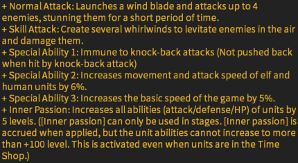 She doesn’t have the CC versatility the Druid does, but the two aren’t really competing considering they are different damage types. Furthermore, Sylphid is good for elf-human teams as she grants bonus movement speed and attack speed to both races and has some unit skills that affect ranged units as opposed to only elves.