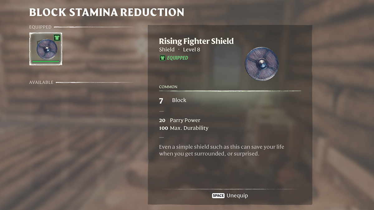 There’s an additional wrinkle to parrying in Enshrouded, as well. You can parry with both the weapon you’re holding or a shield, and stagger amounts depend on the item’s Parry Power. The higher the Parry Power, the more stagger builds. An item’s Parry Power is listed in the item’s description when viewing it in your inventory or crafting menu.