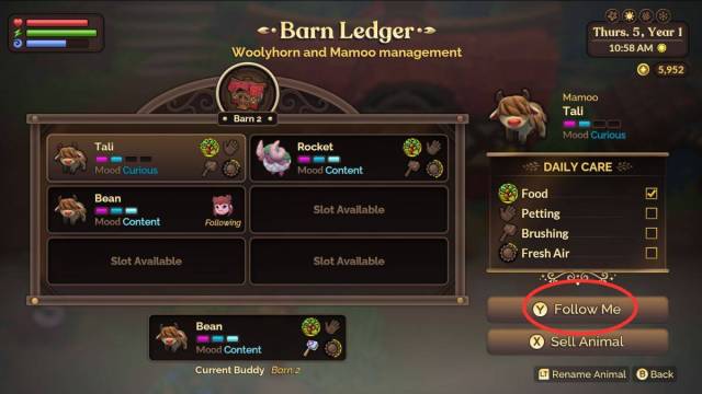Once you’ve unlocked your first spell, you can clear the fog in the upper level of your farm to unlock your Barn. Your Barn will house the Mamoos and Woolyhorn that Jeremiah sells for 300 Florins each. Use the links to jump to each section below: