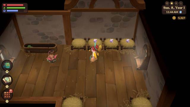 - Enter the barn/coop and approach the trough in the upper left corner. Then, use your action key to enter the trough interface. Finally, select the animal that needs feed.