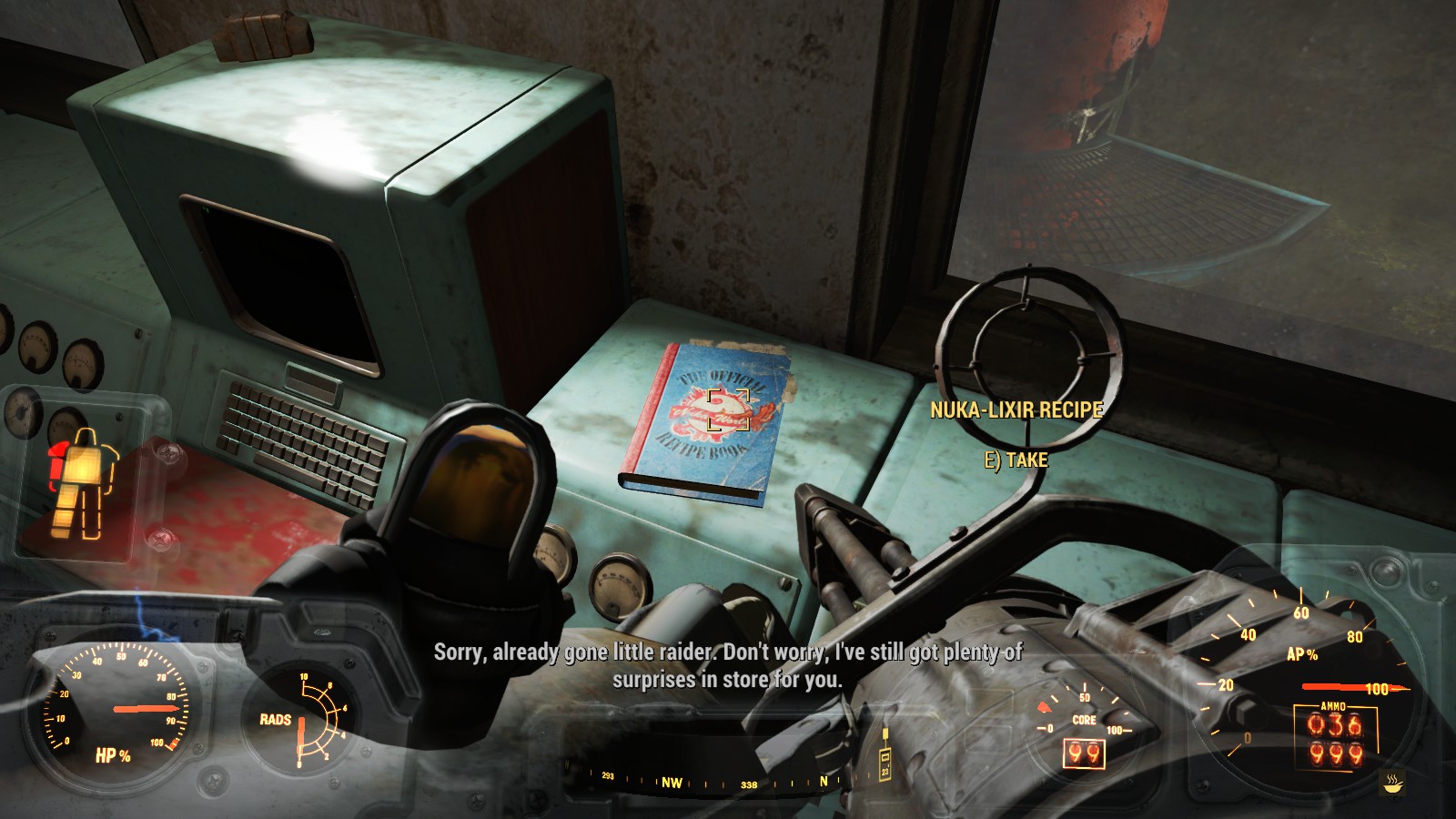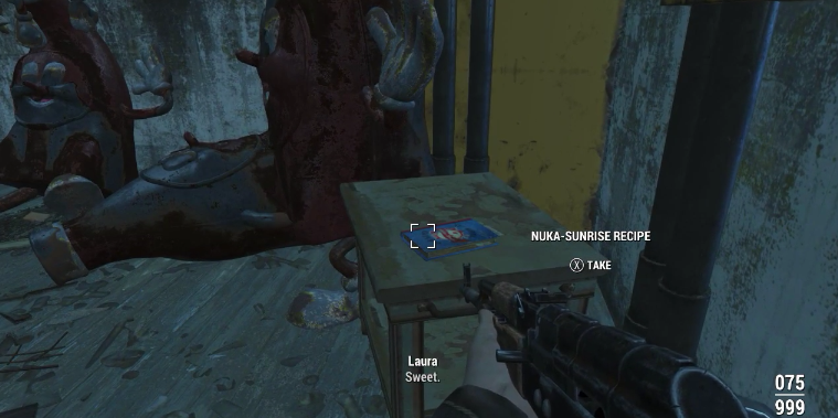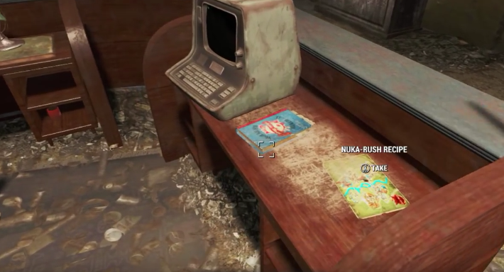 A Fallout version of that fun “suicide” drink kids like to make by mixing all the fountain flavors together, to make Nuka-Cide you must first grab the recipe book sitting in the back room of Cappy’s Cafe.