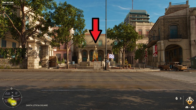 Just like missions that ask you to destroy a certain number of billboards in a region, for example, Paint the Town doesn’t tell you where to find the statues in Esperanza. They aren’t marked on your map, and although a quest marker pinpoints the location of each monument, it only appears once you get within about 30 meters of it.