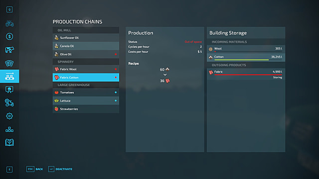 While there are many things to produce in FS 22, one of the most lucrative production chains is cotton -> fabric -> clothing. In a normal economy setting, the average price difference between raw cotton and clothing is roughly $10,000/L.