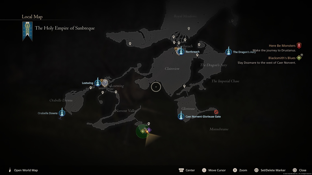 The actual location of the Final Fantasy 16 Dozmare Griffin is the southern tip of the pathway from Lostwing. That’s because the small zone also leads to Caer Norvent, albeit one that doesn’t have a visible Obelisk on the map. You can see the correct location in the image below: