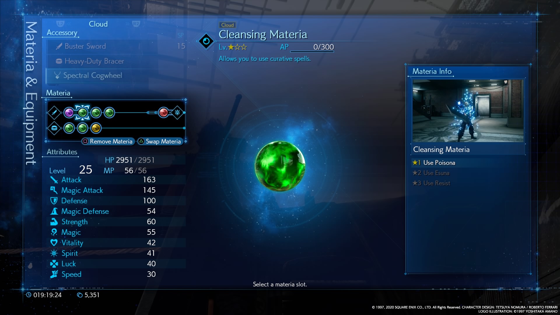 Location: You can purchase the cleansing materia for 300 gil after completing the Rat Problem sidequest in Sector 7. Alternatively, you can buy it for the same price starting in Chapter 5.