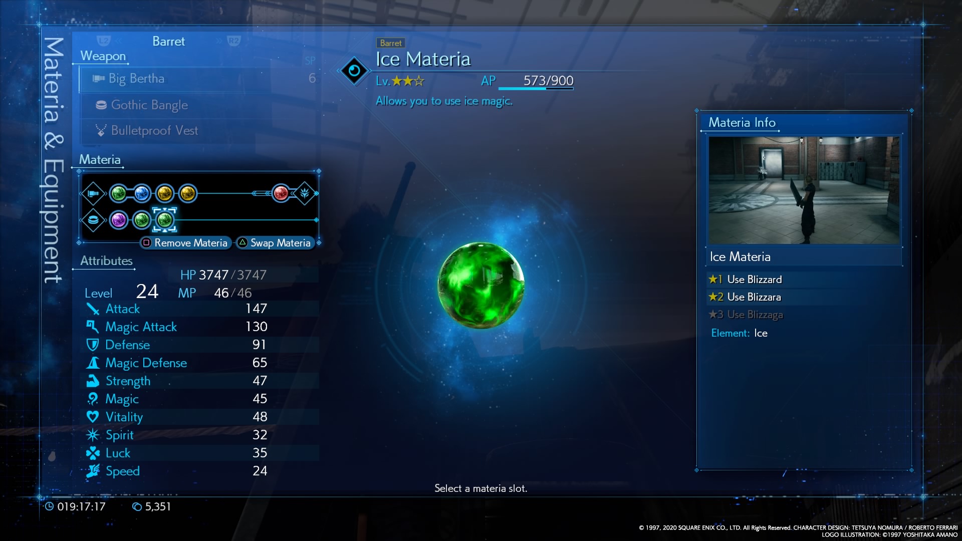 Location: You’ll find your first orb of Ice materia in the Scrab Boulevard during the Chapter 3 section A Job for the Neighborhood Watch. You can also buy it for 500 gil beginning in Chapter 3.