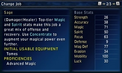 You can go strictly damage, strictly heals, or a combination of the two like I do. Sage does suffer from AP issues when in battle, even with Enlightenment, so I suggest getting equipment with Absorb AP on it, like the Thief’s Anklet.