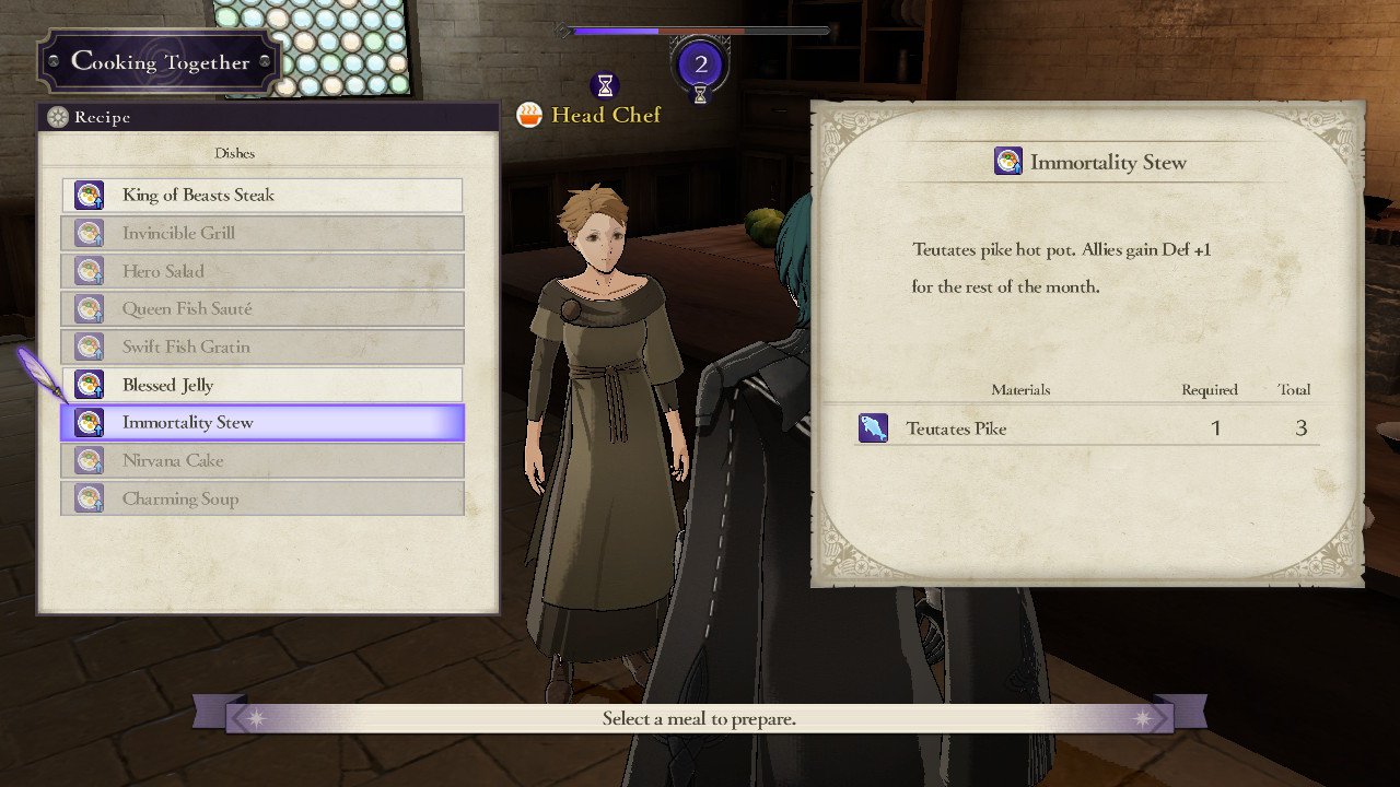 This is a relatively easy activity in Fire Emblem: Three Houses, and it’s worth investing some time in it. Once it unlocks, a new marker will show up in the dining hall where you’ll be able to access a list of recipes and characters.