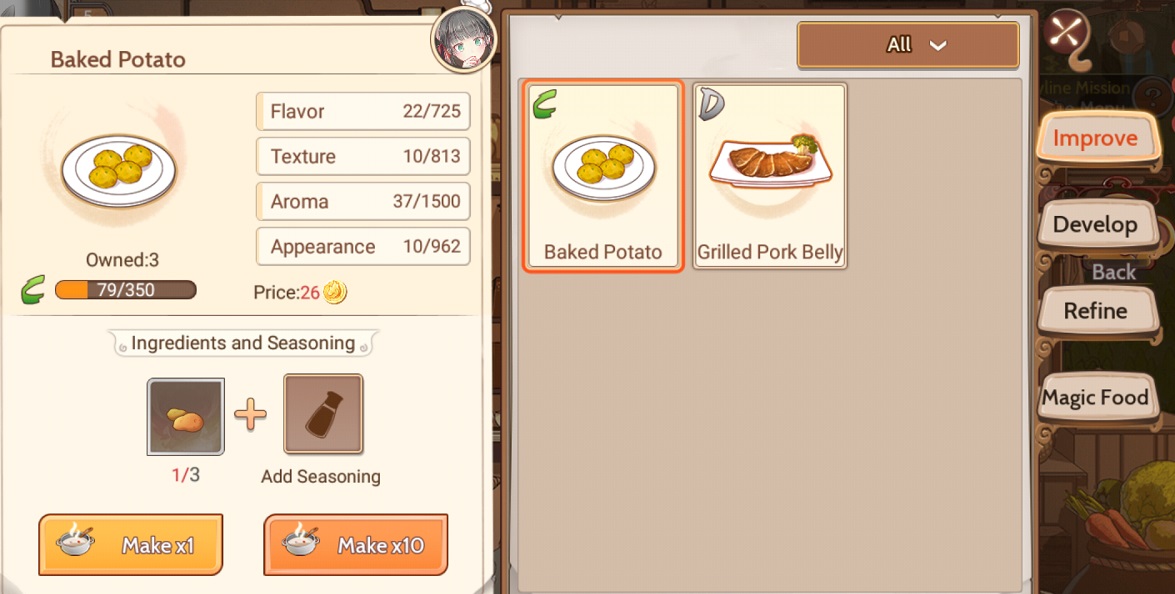 Blindly trying to develop dishes with random ingredients is a major pain, and the process is made much worse by the timers in the dish development area. If you want to skip all the trial and error (and endless waiting) just reference our complete Food Fantasy recipe list below to get started making better meals!