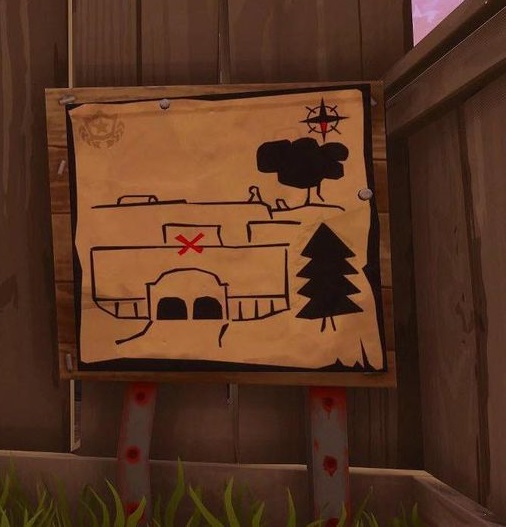If you aren’t one of those Cheaty McCheatersons who skip the actual map portion of the treasure hunt, hop off the battle bus and land at Risky Reels to find the map propped up against the edge of a wood building.
