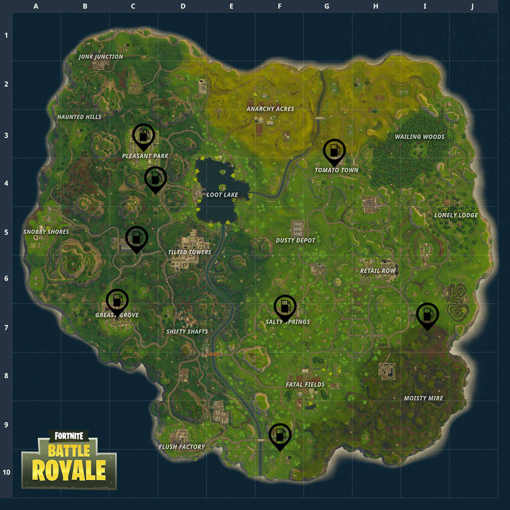 All the currently known Fortnite Week 5 gas station locations are listed below and are marked on the map with a gas icon. Several walkthrough videos and guide websites online have mentioned a gas station in Retail Row, but this doesn’t seem to be accurate, as I haven’t been able to find one there after multiple matches. Here are all the gas stations I’ve found so far: