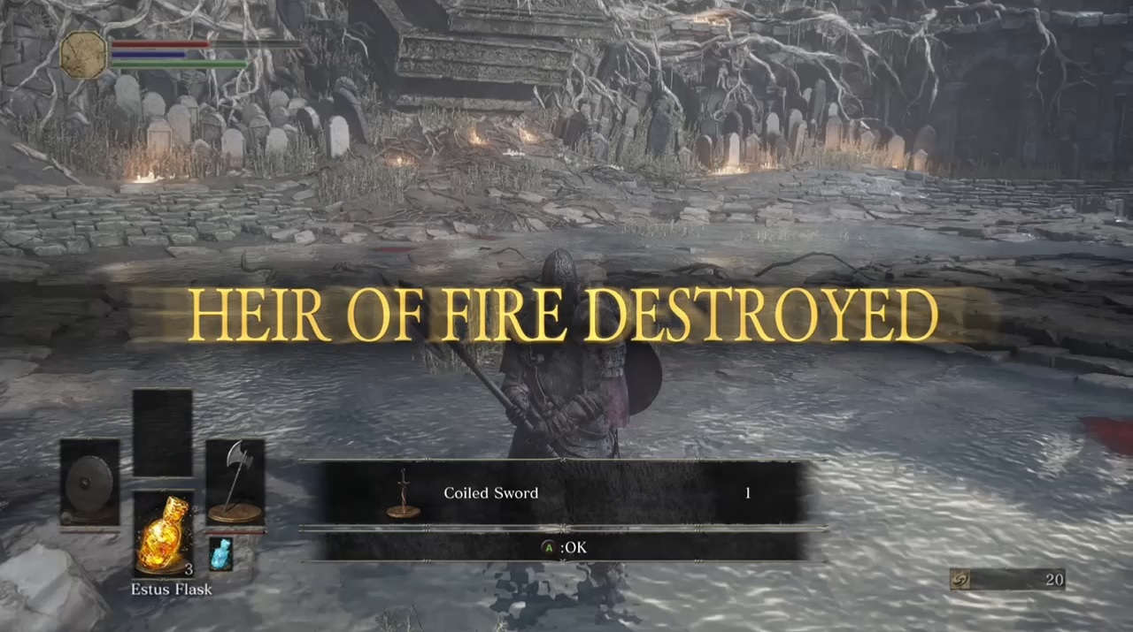 Conquering Iudex Gundyr, Heir of Fire will reward you with 3,000 souls, the Coiled Sword and Ember restoration, which grants you more health and the ability to partake in multiplayer capabilities such as summoning and invading. Furthermore, embedding the aforementioned Coiled Sword into the Firelink Shrine bonfire found in the next area will restore its power. This will allow you to freely teleport to any bonfire you ignite on your journey from this point forward.