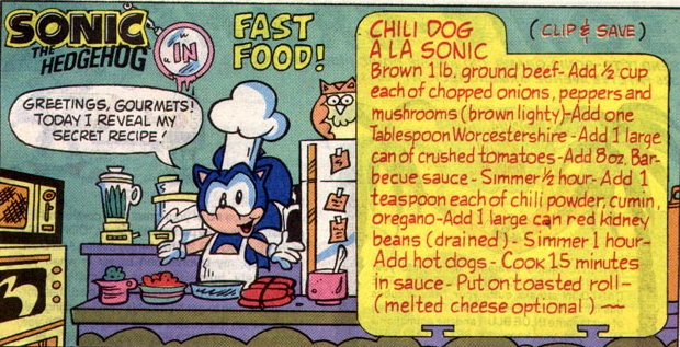 In the first issue of Archie’s Sonic the Hedgehog, readers were treated to the recipe for how to make Sonic’s chili dogs, his favorite food. All in all, it is a good recipe for chili dogs.