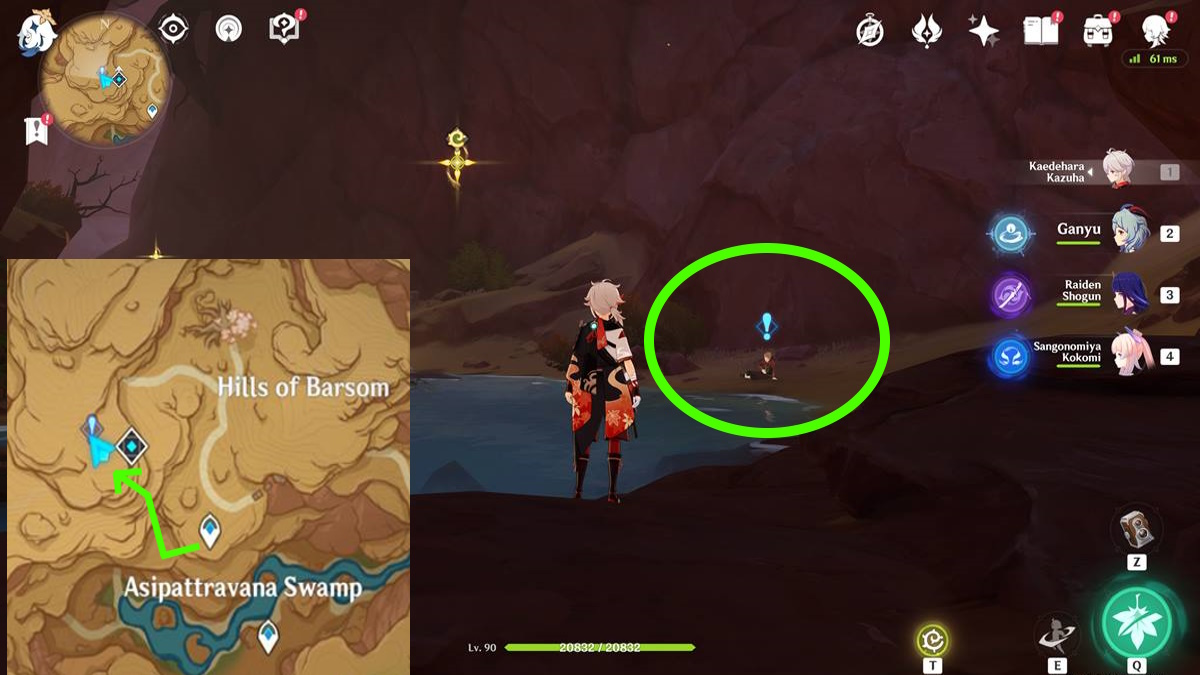 On the next daily reset, you’ll find Julien in the cavern once more. Defeat the enemies around him, and head back inside the tunnel. You’ll notice glowing symbols near Hilichurl enemies, which represent clues on where to find his canvas.