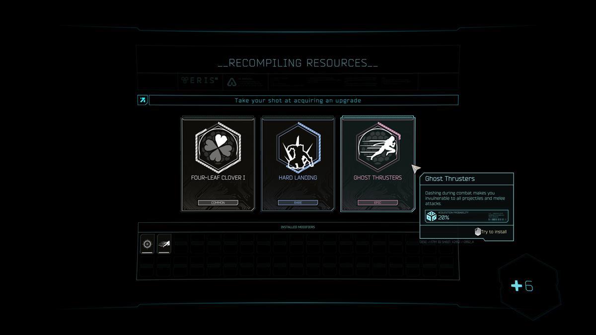 - Ghost Jammer: Gap-jamming (i.e. grappling) during combat makes you immune to all projectiles and melee attacks.