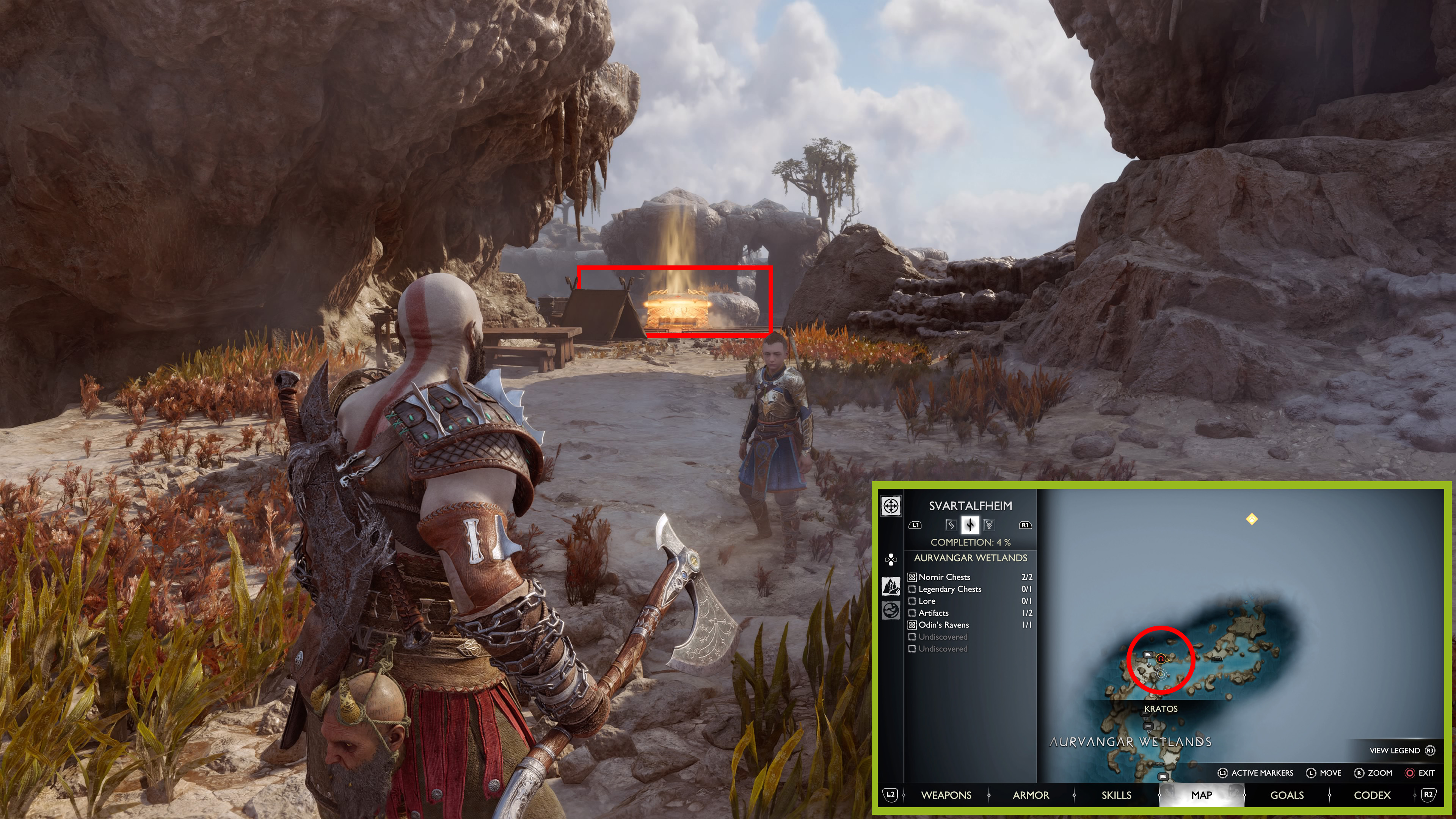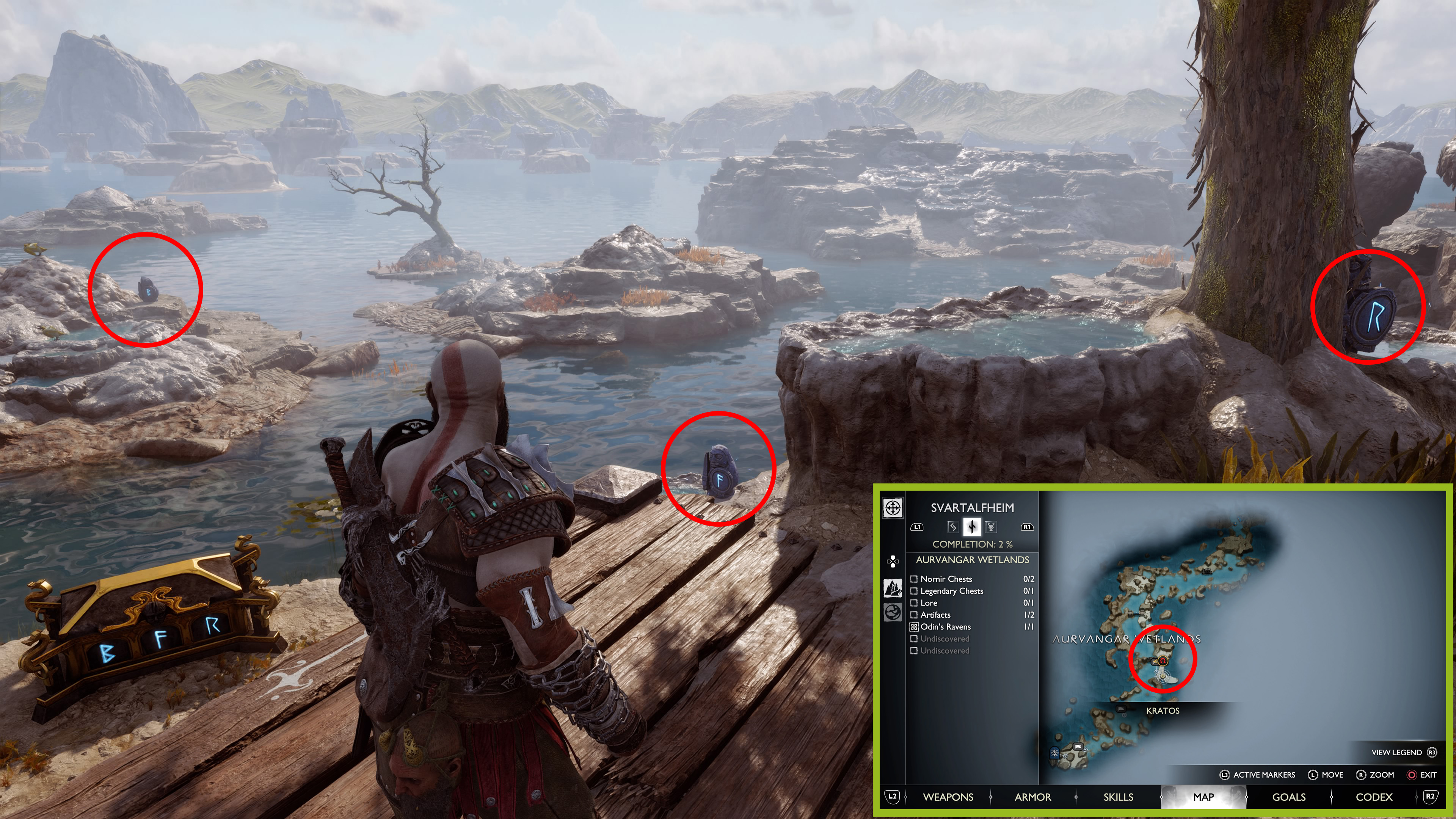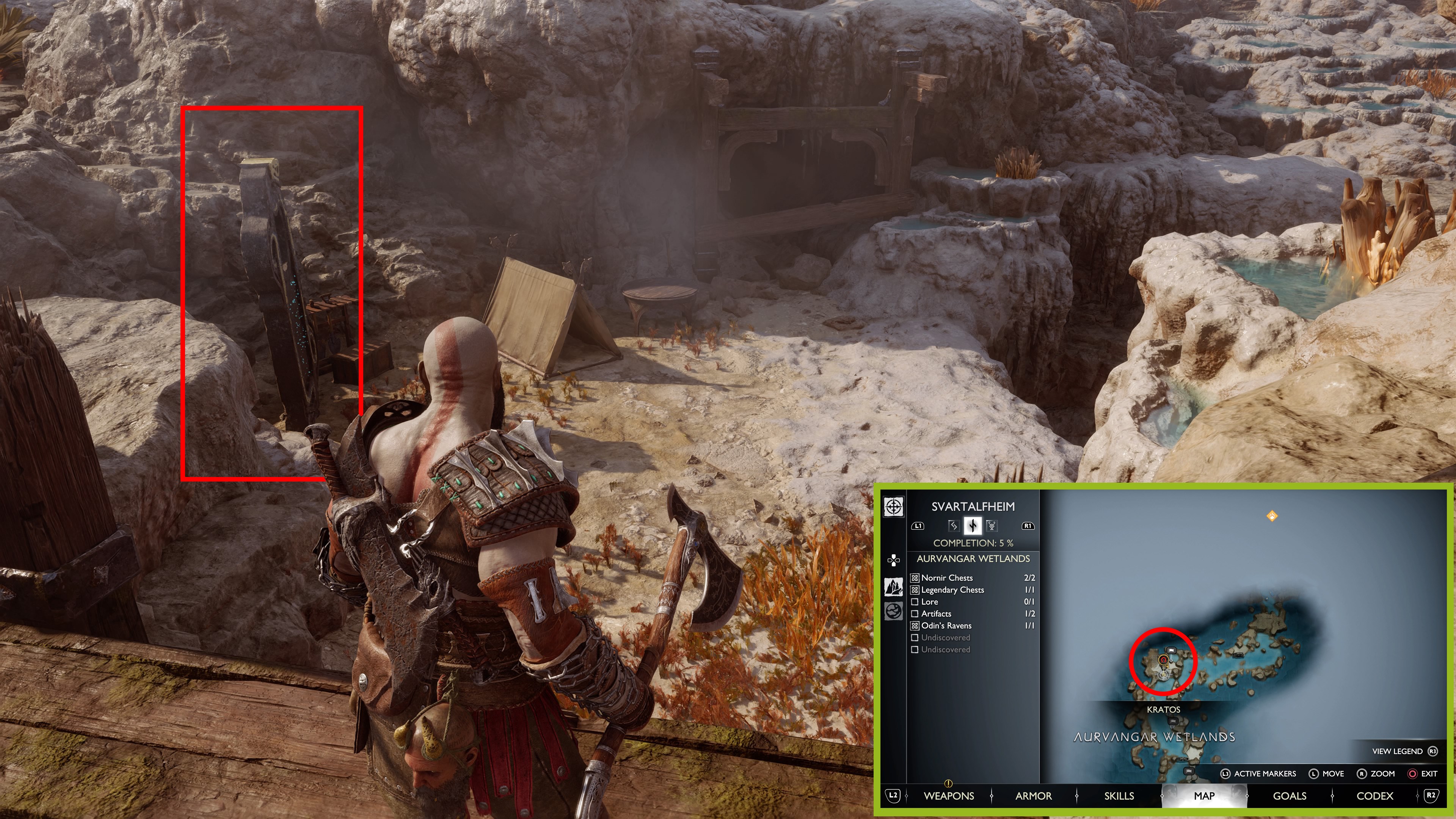 Svartalfheim’s Aurvangar Wetlands is the first area you’ll enter after finishing the God of War: Ragnarok‘s tutorial and going through your first Mystic Gateway. There are nine collectibles to find here, though you can only collect seven of them your first time here. Two require you beat the game first before returning.