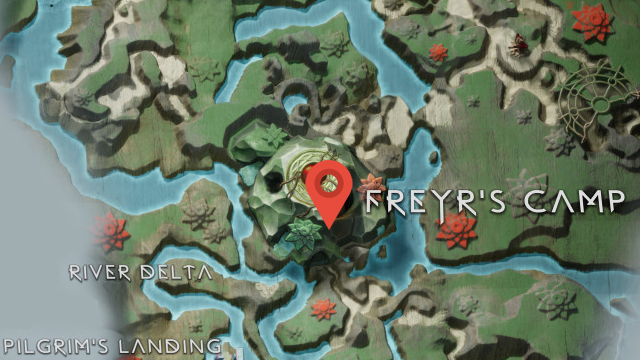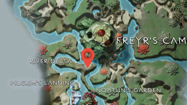 Travel to the location indicated on the map above in the Freyr’s Camp of Vanaheim. Be sure to do this in the day time, as that’s the only time when the path can be unlocked.