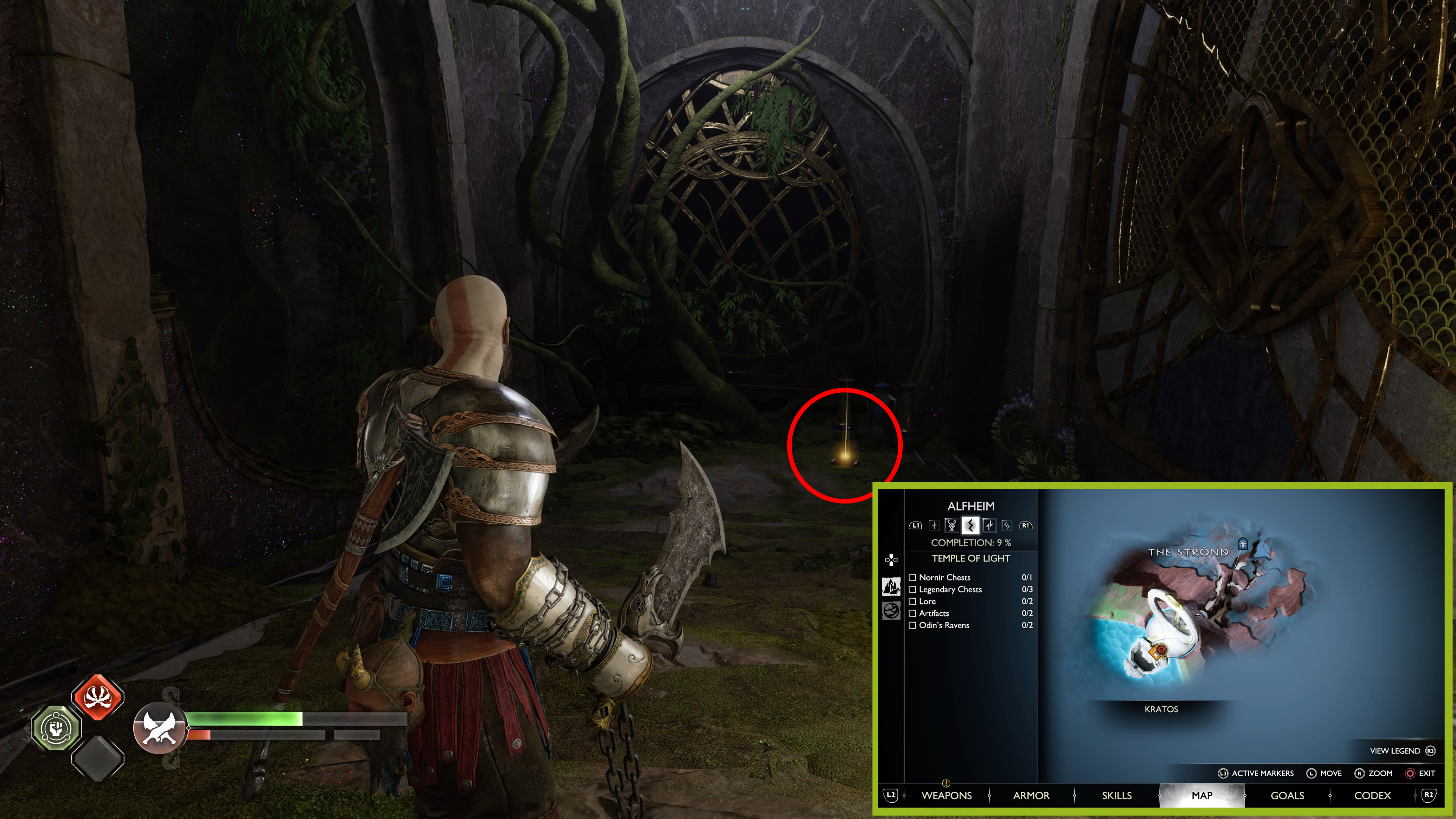 You’ll first reach Alfheim’s Temple of Light location in God of War: Ragnarok during the Groa’s Secret story quest. Unlike most of the other areas you’ve explored up to this point, you’ll be able to get all of the collectibles in the Temple of Light during this quest. Try to pick these all up your first time through, as there’s no Mystic Gateway to return for some time.