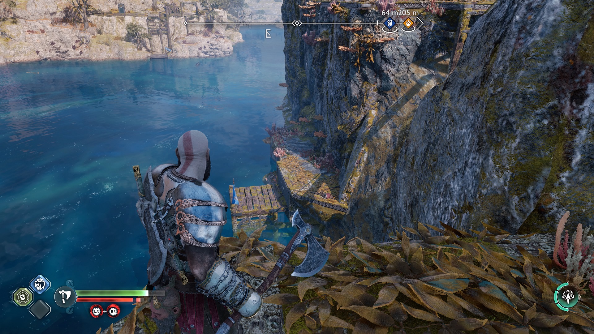 The dock is on the south side, almost directly north of Radsvinn’s Rig. Dock the canoe, and climb up the wall. Defeat the enemies at the top. Once you’ve done so, follow the path to the eastern gate, and destroy the gold barrier to its right. Interact with the large tether at the end, then cut the chain. After, destroy the second chain that appears by throwing your Axe at it.