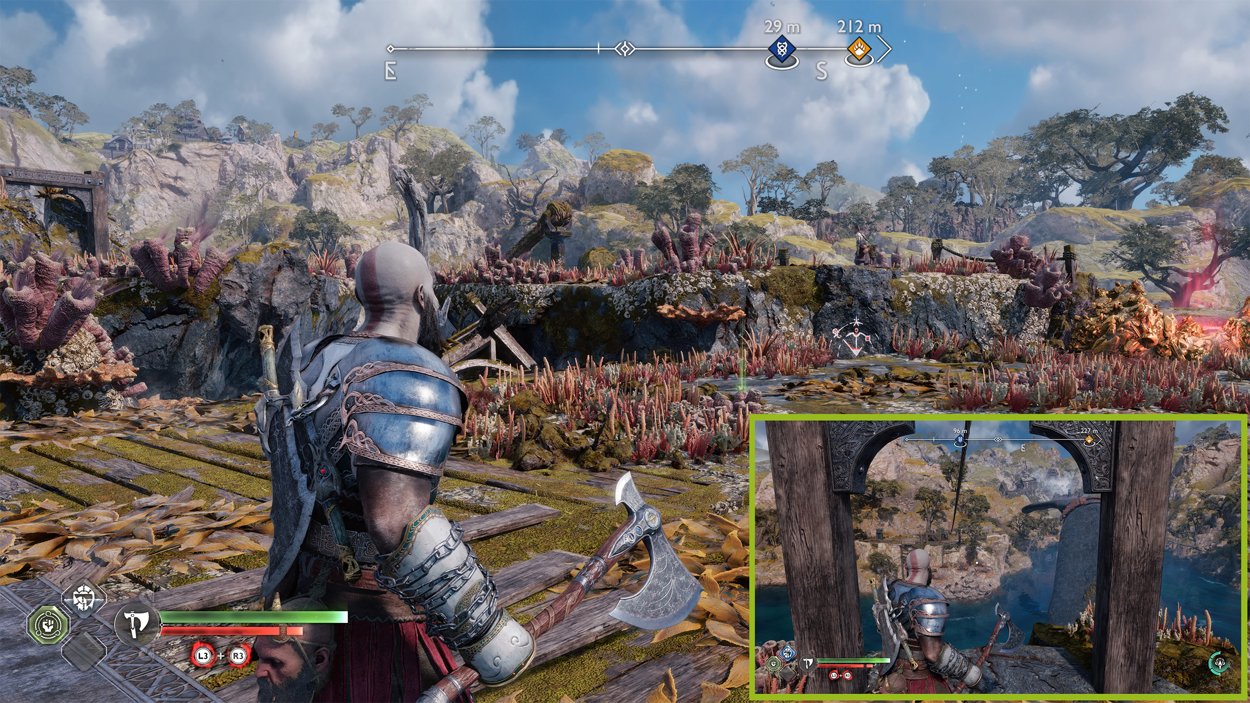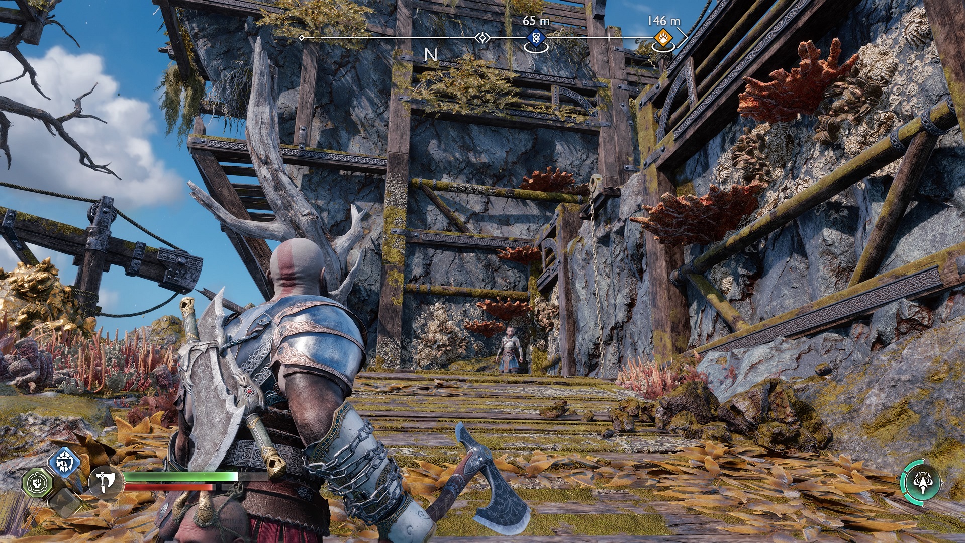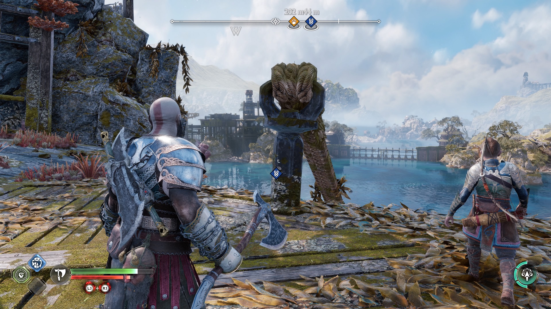 Once on the island, use the Leviathan Axe to blow up the barrier to the right of the dock, and defeat the Wretches that spawn. Go up the path. Destroy the Wretch Nest at the top, and then climb up the small wall.