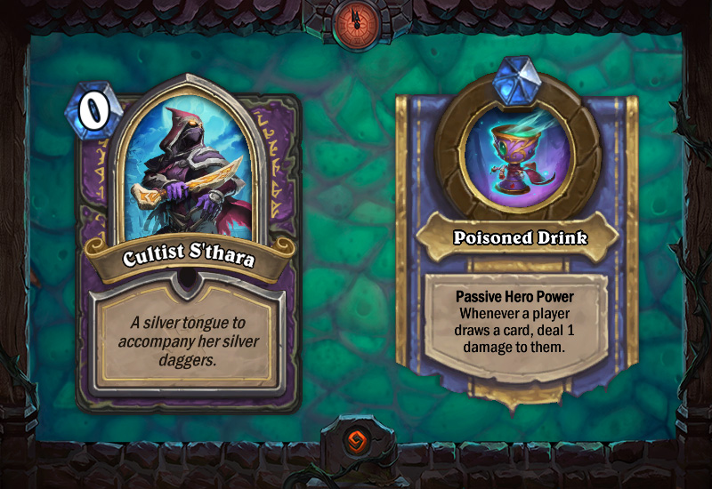 Cultist’s hero power deals damage to you every time you draw a card. This means that if the match goes a bit longer than expected, then you may lose it by simply drawing cards. That is why you should try to choose the First Aid Kit ability before this match, since it will heal you and your minions for 2 HP each turn.