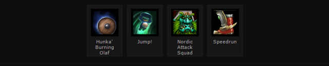 Hunka’ Burning Olaf – Olaf deals 15 (+3 per level) damage every second to nearby enemies.