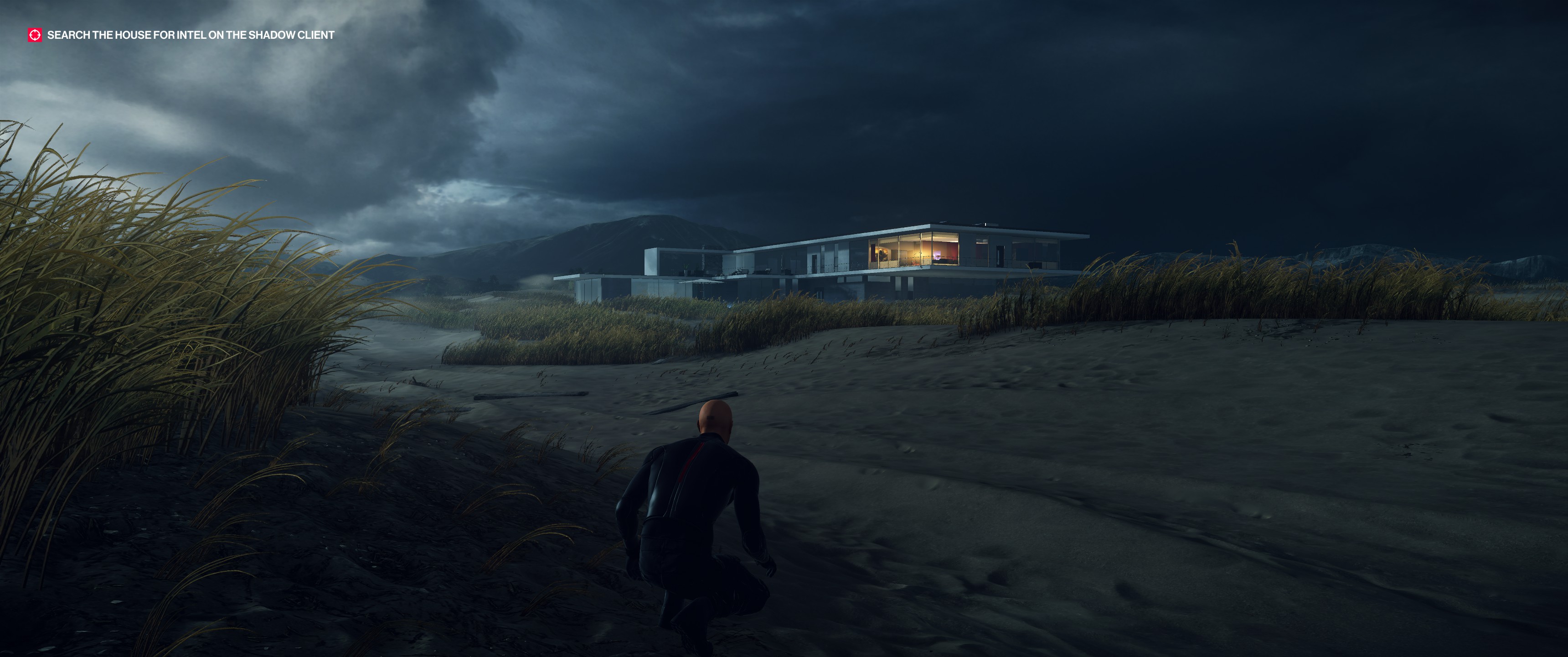 You begin the mission on a windy beach with a ritzy house nearby. There’s no need to sneak around just yet; there won’t be any enemies around until a bit later on.