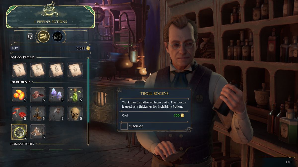 The easiest way to obtain Troll Bogeys in Hogwarts Legacy is to purchase them from J. Pippin’s Potions in Hogsmeade for 100 Gold Galleons. The shop offers an array of brewed potions in addition to ingredients and recipes.