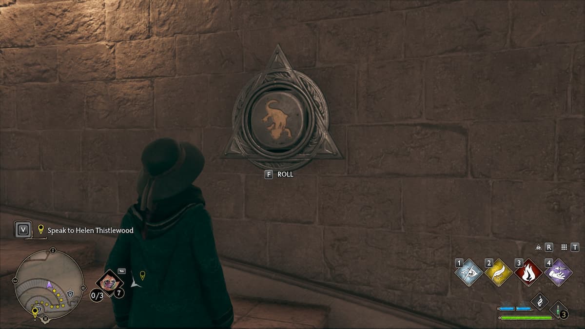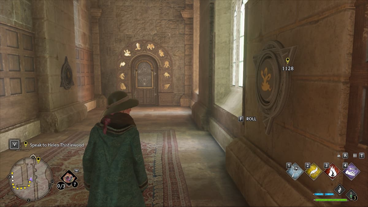 From the transfiguration classroom, head through the doors on the left, toward the Bell Tower. Go up the stairs, and you’ll see a level one locked door. Unlock it and head down the hall. The dials are on either side of the door.