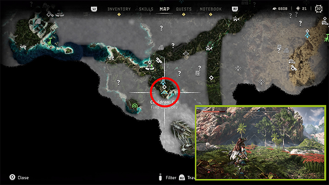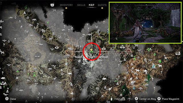 You’ll come to this Cauldron location, just northeast of The Memorial Grove, during the Gemini story quest near the end of the Horizon Forbidden West campaign. Complete this mission, and you’ll automatically complete this Cauldron, getting the (awesome) Sunwing override.