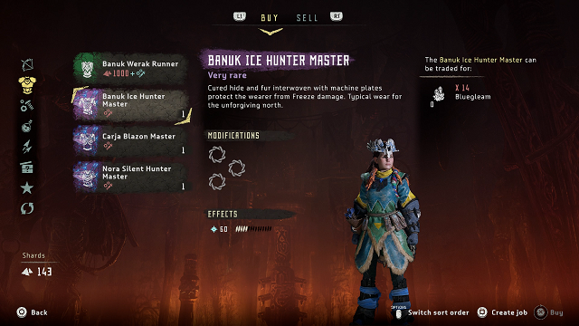 You can purchase the Banuk Ice Hunter armor for 14 Bluegleam.