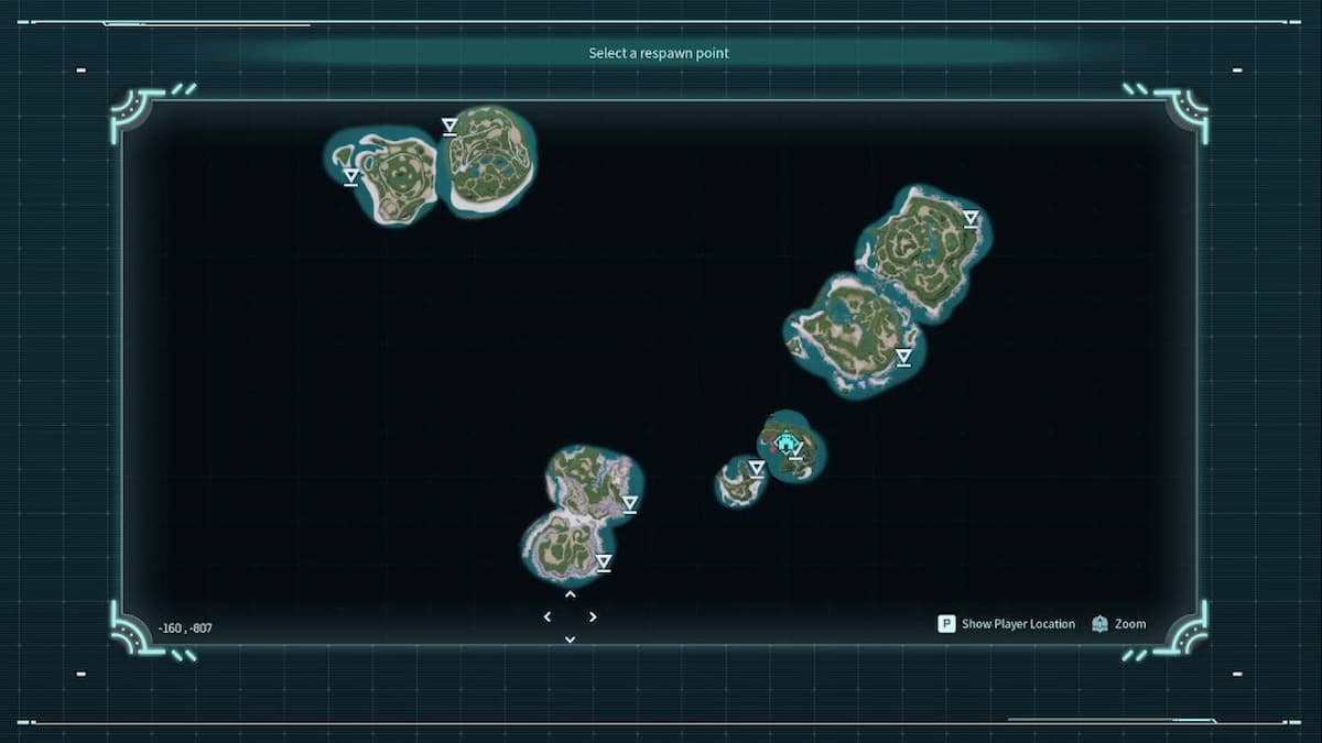 Playing alone, I frequently dies early from falling or drowning. But instead of respawning only at my base, I was given the option to respawn at locations I hadn’t been to before. These points are on other Palworld islands. They are the potential starting options given in multiplayer.