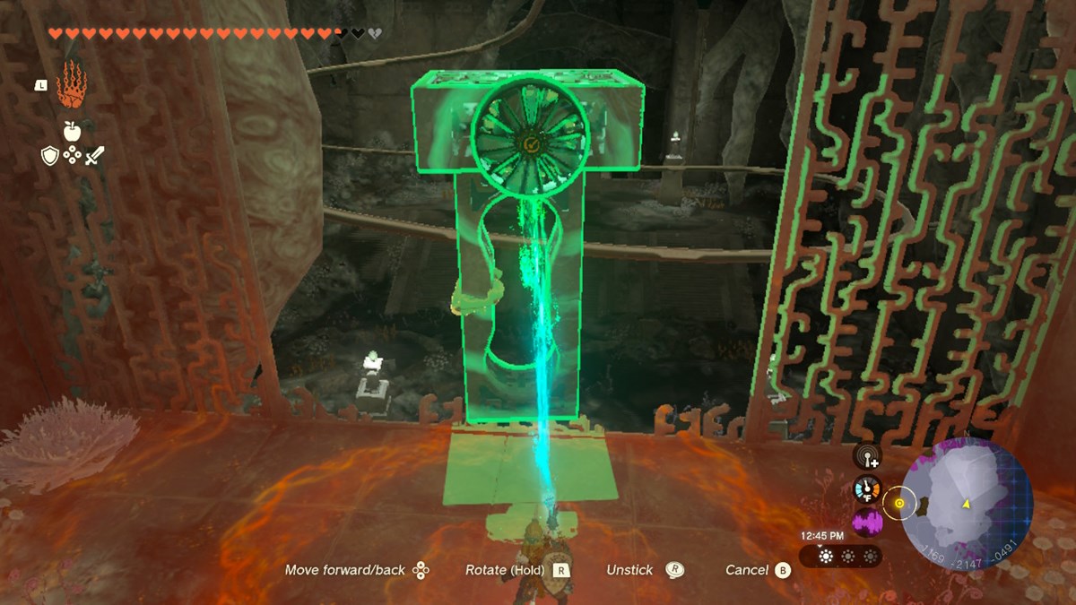 - I brought the contraption to the other side of the chamber, lifting it into the air for several seconds using Ultrahand.