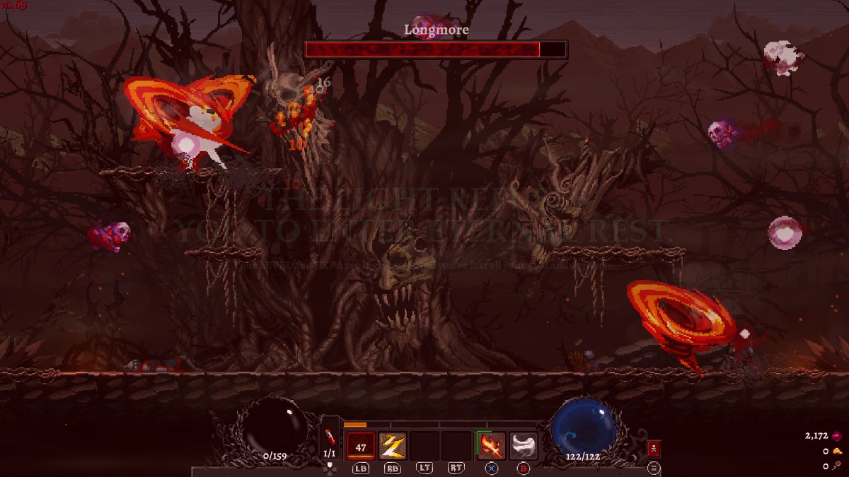 - On my successful run against Longmore, I had prepared by choosing health buffs throughout the previous areas and entering the battle with full health.
