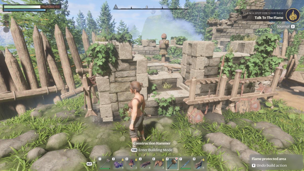 If something’s where you want to place your Flame Altar, you can demolish the object using the Construction Hammer. Once you’ve placed the Altar and made your base’s bounds (or expanded them by growing your Flame), you can enter building mode to remove structures.