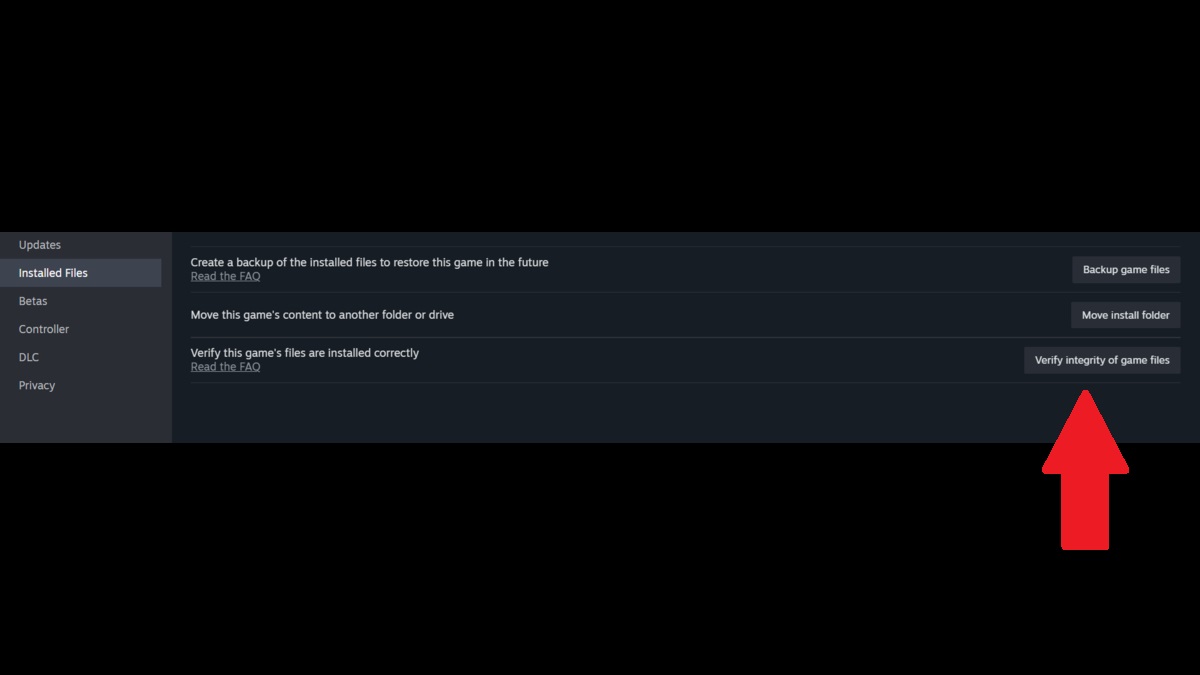 • Click the ‘Verify Integrity of Game Files’ button