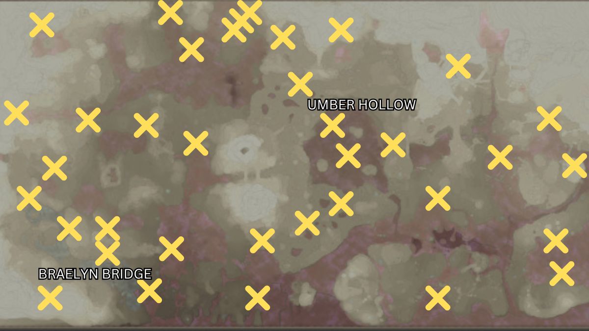 Chopping down a Shroud Root or Elixir Well eliminates the Shroud from that area, making it a safe space until it respawns. There are currently fifteen Elixir Wells and twenty-three Shroud Roots in the game. I marked the map above with all of their locations. Of course, the difficulty will increase as you progress outward from the tutorial region, so be sure to complete those first.