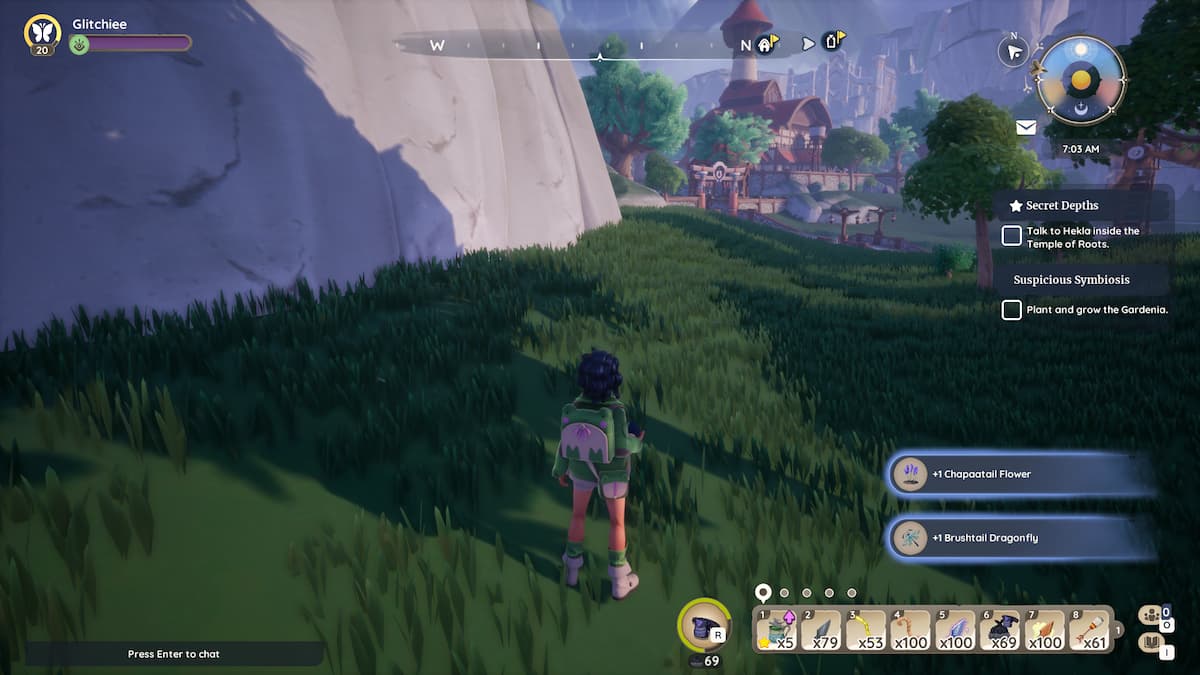 Auni visits your home plot to get you started finding flowers. Starting with catching Common Blue Butterflies, he wants you to grow a Gardenia from the seed they drop in the quest Suspicious Symbiosis. Completing this mission gets you x5 Renown and x40 Sticky Smoke Bombs.