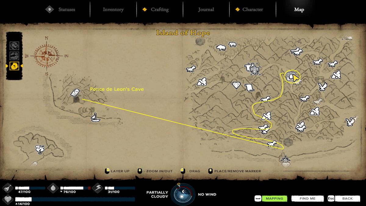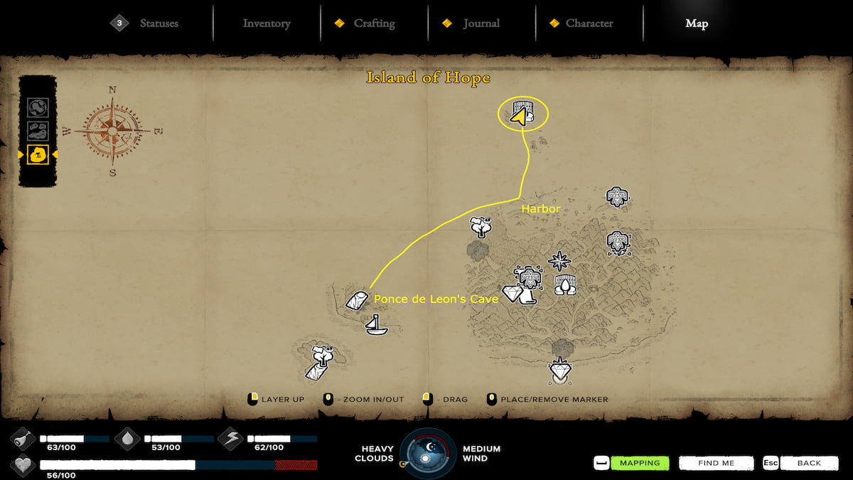 Along with Green Coconuts and Rain Water Collectors, you can also find Fresh Water spots where you can scoop up and collect water to drink. After finding Ponce de Leon’s cave on Hope Island, you’ll find a map that displays both the nearby Water Spots. The Water Spots are symbolized by the water drop icons on the map. However, figuring out how to navigate to these spots can be a bit difficult to do, so here’s how to get to both.