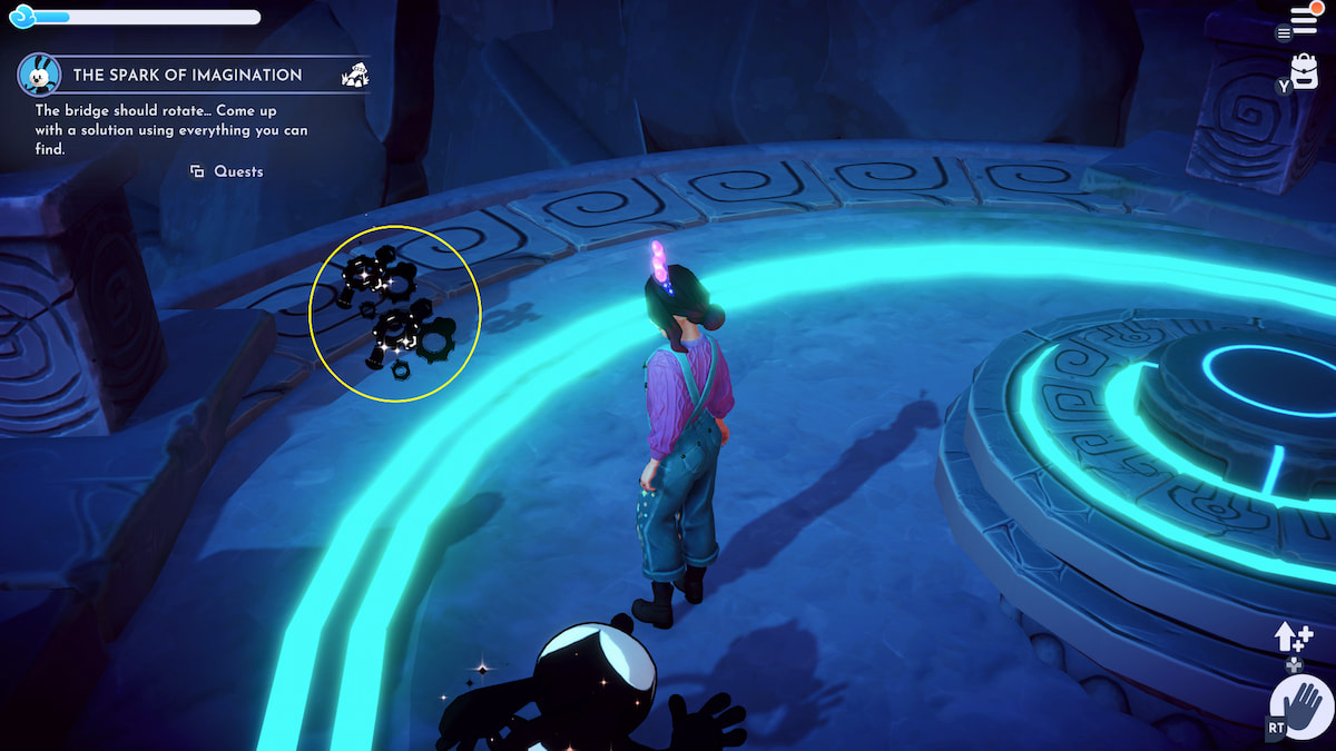 You’ve finally found Oswald, but you’ll need to complete a few more steps before officially welcoming him to Eternity Isle. After the two cutscenes follow Oswald into the main chamber. You’ll see the Spark of Imagination ahead, but you’ll need to complete a few more puzzles to reach it. These are fairly easy steps but take a bit of time, so here’s the jist of them: